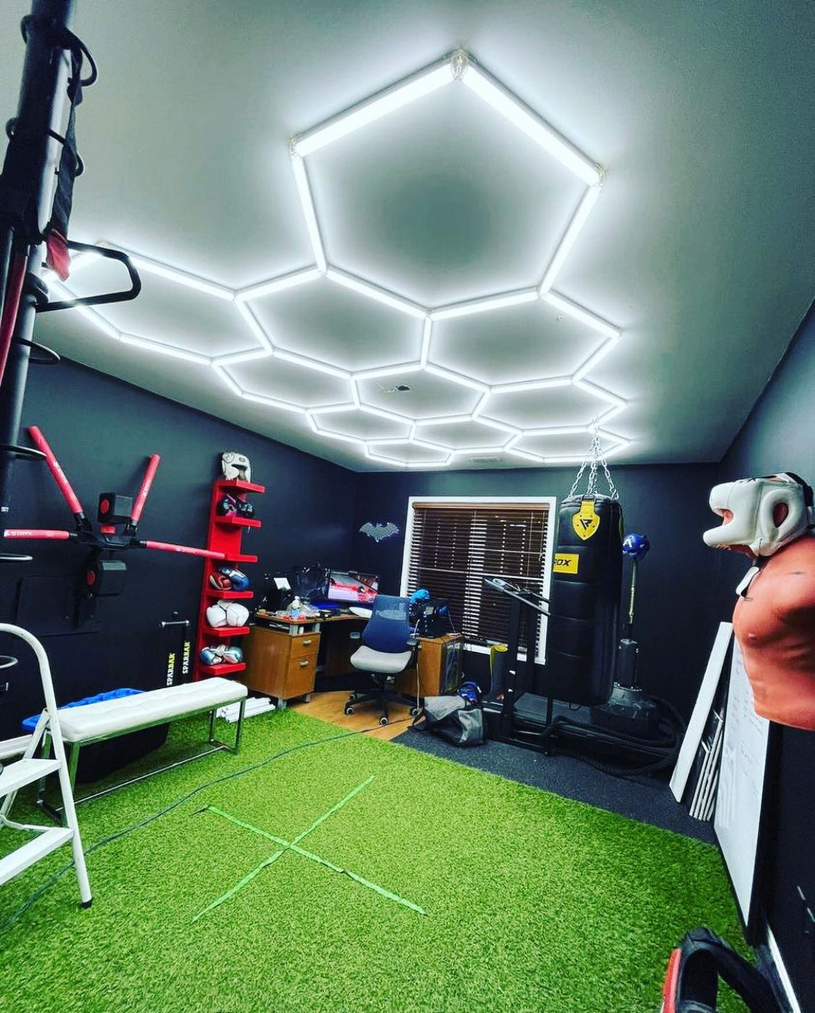 Notre kit d’éclairage comprenant 11 hexagones LED de taille standard est idéal pour tout type d’espace. Avec ses 11 panneaux hexagonaux lumineux, il mesure 3,35 x 2,44 mètres. Facile à assembler, ce kit peut être suspendu ou fixé pour s’adapter parfaitement à un garage, un bureau, studio ou salle de sport.