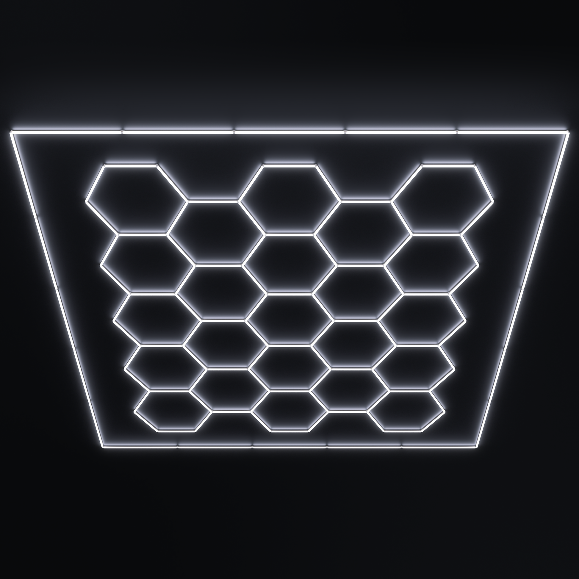 Avec des dimensions de 6,02 x 6,02 mètres, ce kit comprend 23 formes hexagonales lumineuses avec bordure. Facile à assembler, il peut être suspendu ou fixé pour s’adapter parfaitement à tout garage, tout bureau, studio ou salle de sport.